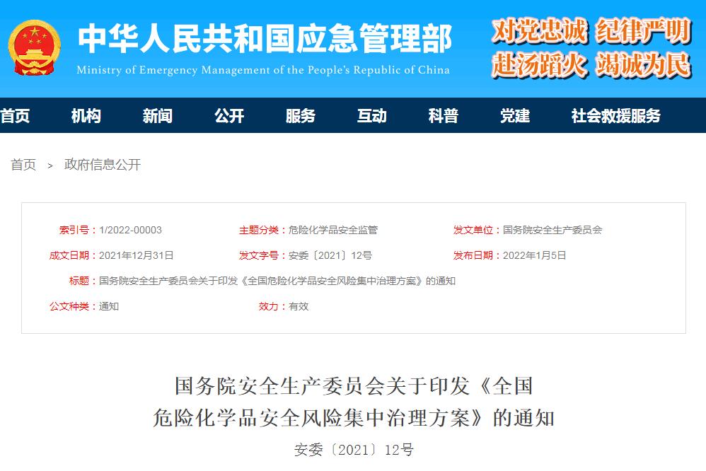全國危險化學品安全風險集中治理方案