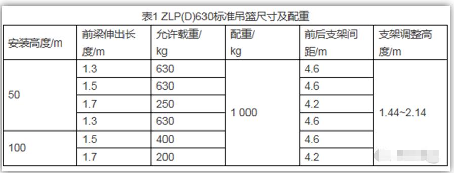 5、高處作業(yè)ZLP630吊籃尺寸及配重 目前市場(chǎng)上通常采用的吊籃有ZLP(D)630, ZLP(D)800, ZLP(D)1000型號(hào)。表1為ZLP(D)630標(biāo)準(zhǔn)吊籃尺寸及配重情況。
