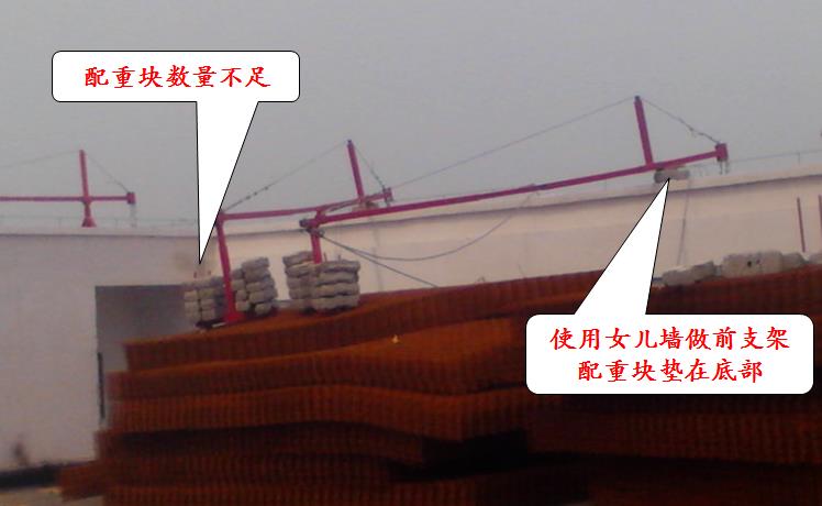 嚴(yán)禁使用破損的配重塊或其他替代物;配重塊應(yīng)固定可靠,重量應(yīng)符合設(shè)計(jì)規(guī)定。