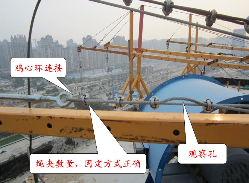 ▲鋼絲繩繩夾與觀(guān)察孔,正確