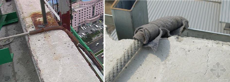 ▲吊籃前支架與配重錯(cuò)誤做法