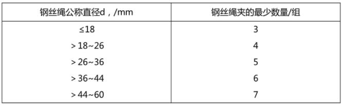 ▲鋼絲繩直徑與繩夾數(shù)量