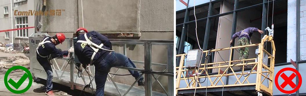 嚴(yán)禁將吊籃用作垂直運(yùn)輸設(shè)備。作業(yè)人員應(yīng)從地面上下吊籃,嚴(yán)禁從窗戶(hù)、洞口上下吊籃。
