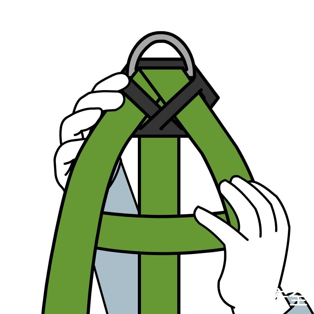 » 準(zhǔn)備工作: 首先,抓住安全帶的背部D型環(huán),搖動安全帶,讓所有的帶子都復(fù)位。