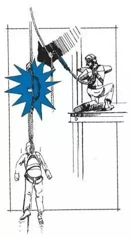 牽索: 牽索是一條有彈性的帶子、人造纖維或鋼絲鎖,用來把安全帶或全身式安全帶連接到救生索或固定物上。 長度越短越好,這樣可以減少下墜的距離。如果使用鋼絲鎖,必須同時使用緩沖器。