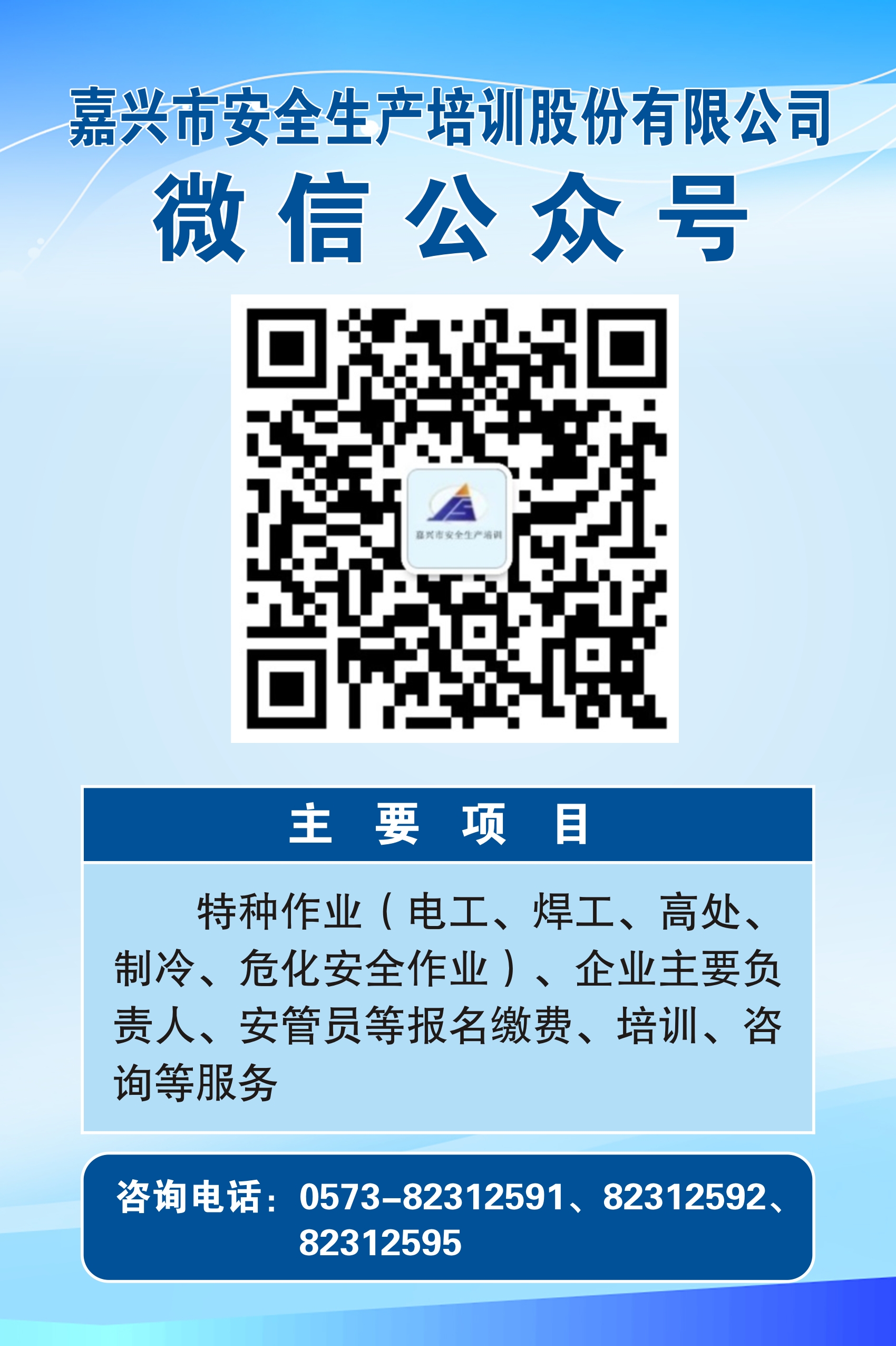 疫情期間,嘉興市安全生產(chǎn)培訓(xùn)股份有限公司特種作業(yè)(焊工作業(yè)、高壓電工作業(yè)證、低壓電工證、危化安全作業(yè)、高處作業(yè)、制冷與空調(diào)作業(yè)等)報(bào)名培訓(xùn)考證均采用線上報(bào)名方式,可關(guān)注微信公眾號“嘉興市安全生產(chǎn)培訓(xùn)”,進(jìn)行報(bào)名操作。