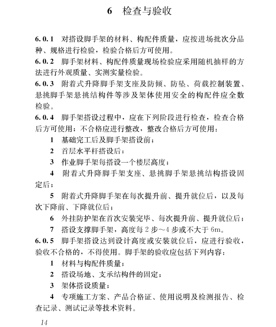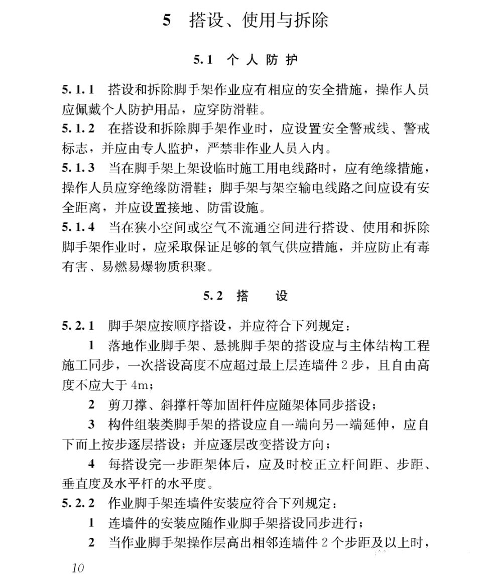 五、《建筑施工工具式腳手架安全技術(shù)規(guī)范》JGJ 202-2010第4.4.2、4.4.5、4.4.10、4.5.1、4.5.3、5.2.11、5.4.7、5.4.10、5.4.13、5.5.8、6.3.1、6.3.4、6.5.1、6.5.7、6.5.10、6.5.11、7.0.1、7.0.3、8.2.1條。