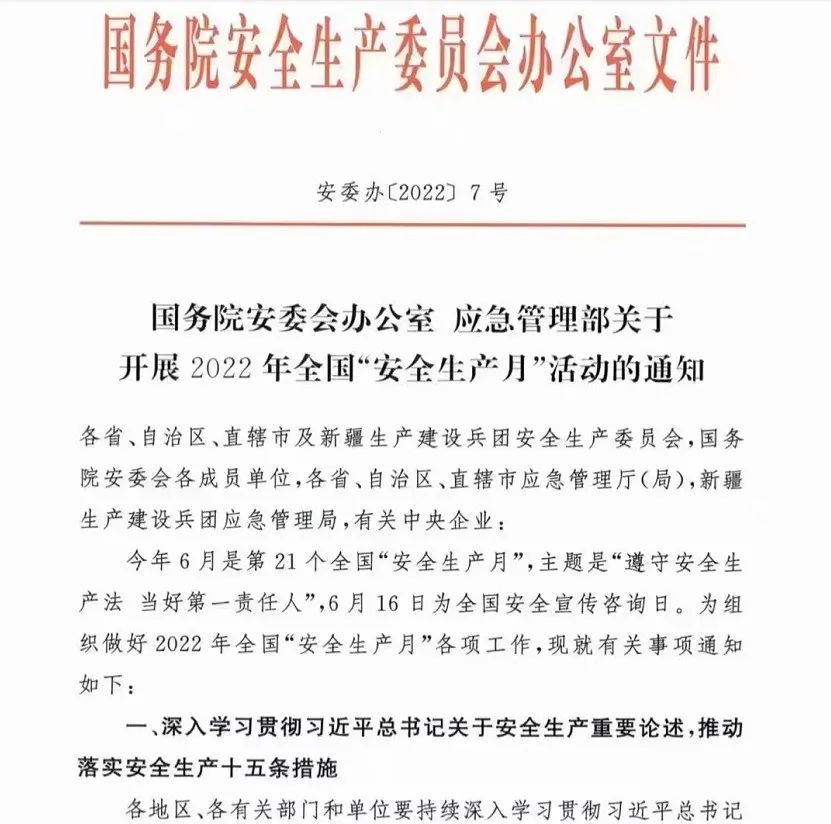 三、國務(wù)院安委16個(gè)檢查組全國大檢查已開始 根據(jù)黨中央、國務(wù)院決策部署和全國安全生產(chǎn)大檢查工作安排,自4月中旬至6月底,國務(wù)院安委會組織16個(gè)綜合檢查組,對31個(gè)省(自治區(qū)、直轄市)和新疆生產(chǎn)建設(shè)兵團(tuán)安全生產(chǎn)大檢查情況進(jìn)行綜合督導(dǎo),并同步開展國務(wù)院2021年度省級政府安全生產(chǎn)和消防工作考核巡查及國務(wù)院安委會成員單位安全生產(chǎn)工作考核。重點(diǎn)檢查15條硬措施! 新安法已經(jīng)實(shí)行,“生產(chǎn)經(jīng)營單位的主要負(fù)責(zé)人是本單位安全生產(chǎn)第一責(zé)任人,對本單位的安全生產(chǎn)工作全面負(fù)責(zé)”這一條款對于企業(yè)“一把手”來說,是壓力也是動力。主要負(fù)責(zé)人重視安全流于表面,一直是部分企業(yè)安全生產(chǎn)工作的痛點(diǎn),而首次在法律層面提出第一責(zé)任人的說法,體現(xiàn)出企業(yè)主要負(fù)責(zé)人對安全生產(chǎn)的極端重要性。