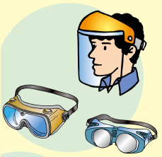 ❷ 眼罩、面罩 保護(hù)雙眼免受強(qiáng)光或飛射物所傷。