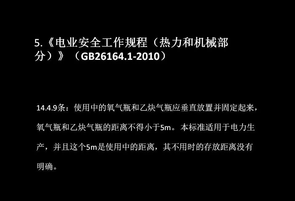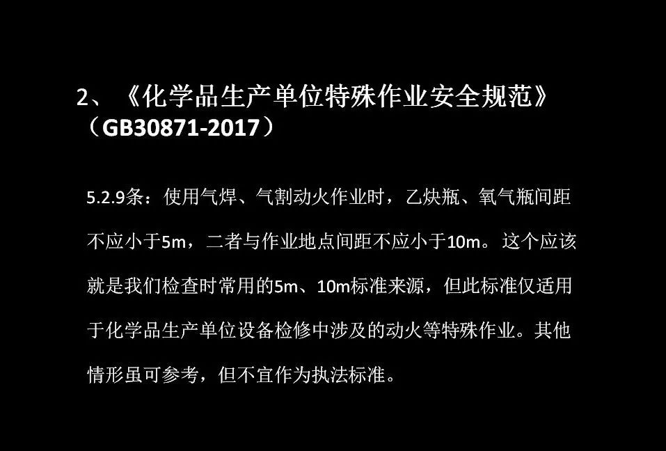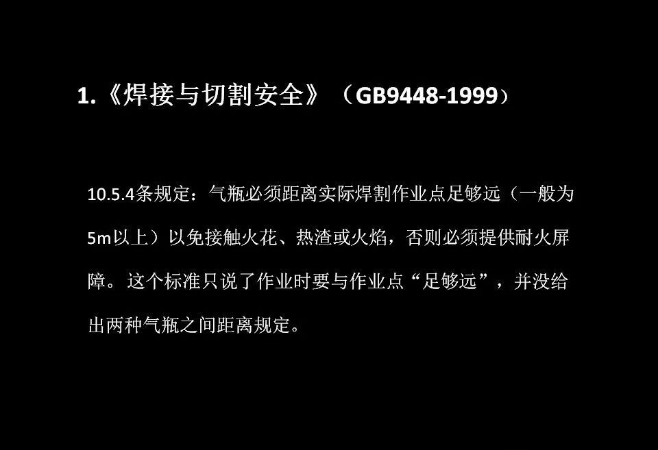 乙炔、氧氣瓶存放距離到底應為多少才安全?關于這個問題的答案網上和公眾號里眾說紛紜,作為一個追求用標準說話的安全人,今天對這個問題重新進行了研究,查到現行以下標準:
